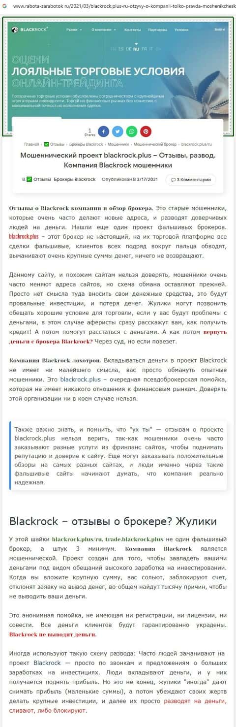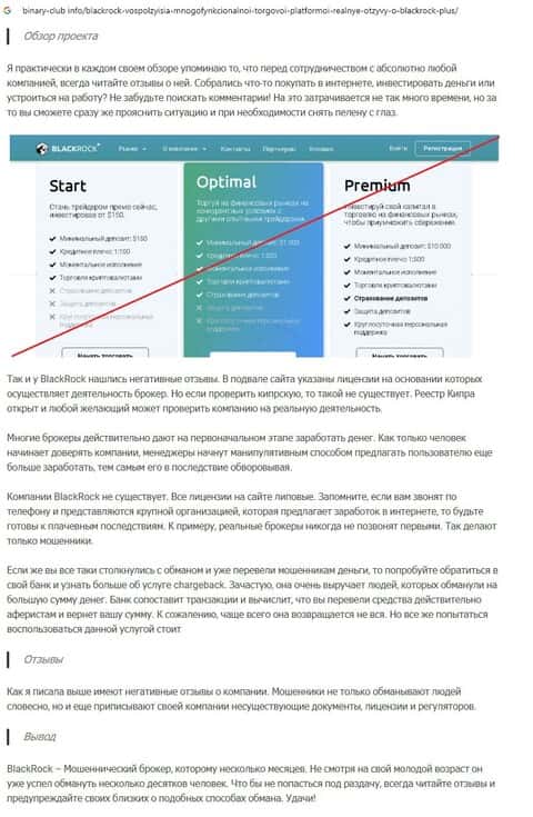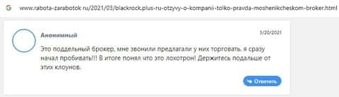 - Шулера BlackRock Plus опубликовывают лживые положительные отзывы в сети