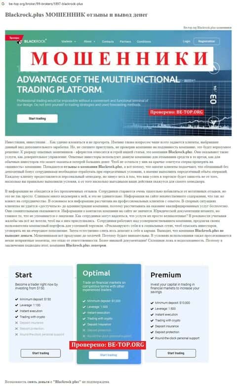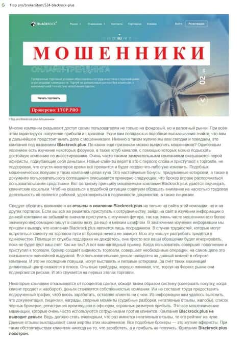 - Обзор главной страницы жульнической организации BlackRock Plus