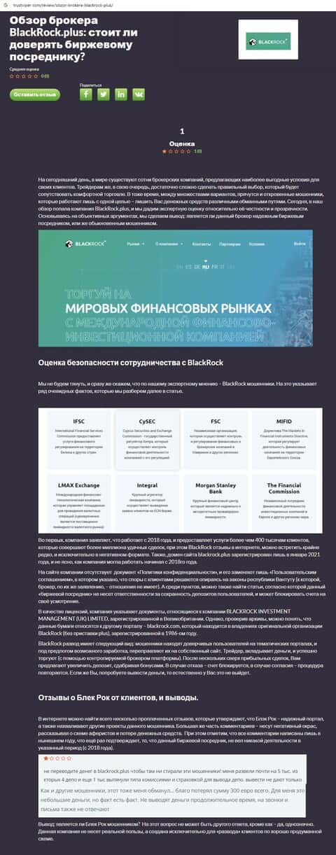 Шулера BlackRock Plus опубликовывают лживые положительные отзывы в сети
