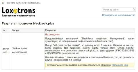 - Уровень доверия к сайту жульнической конторы BlackRock Plus низкий