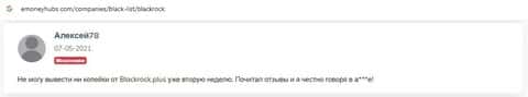 Автор ниже предоставленного отзыва рассказывает о том, что не может вывести свои средства с сайта шараги Black Rock Plus, не говоря уже о прибыли.
