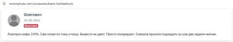 Пользователь подтверждает то, что мошенники Блэк Рок Плюс игнорируя попросту не выводят денежные средства со счета, якобы откладывая вывод денег на потом.