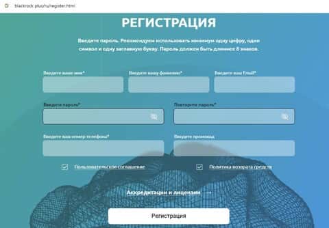 - Пользовательское соглашение на сайте аферистов BlackRock Plus