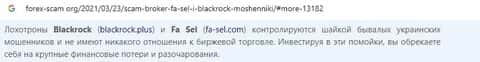 Псевдо-брокерская контора Блэк Рок Плюс работает совместно с интернет-лохотроном Fa Sel, обманывая пользователей всемирной паутины на немалые суммы денежных средств.
