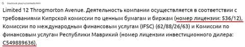 На сайте комиссии по ценным бумагам и биржам Кипра cysec gov cy так же не обнаружено никакой информации о лицензии мошеннической организации Блэк Рок Плюс.