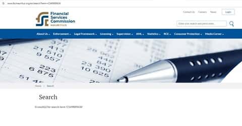 На официальном сайте комиссии по финансовым услугам Маврикий fscmauritius org нет никаких данных о регистрационном номере жульнической компании Black Rock Plus.