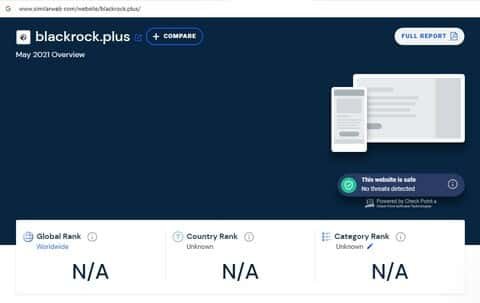 При проверке источников бренда по странам скам-компании Black Rock Plus на сайте similarweb com, информация отсутствует, что является признаком фейкового лохотрона.