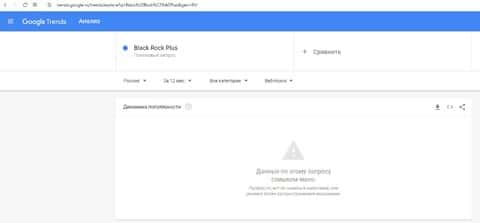 О количестве запросов по бренду названия компании на русском языке "БлэкРок Плюс" на Гугл Трендс нет никакой информации.