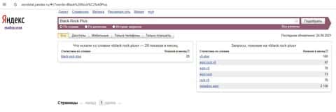 - Количество запросов по бренду Black Rock Plus в поисковике Яндекс