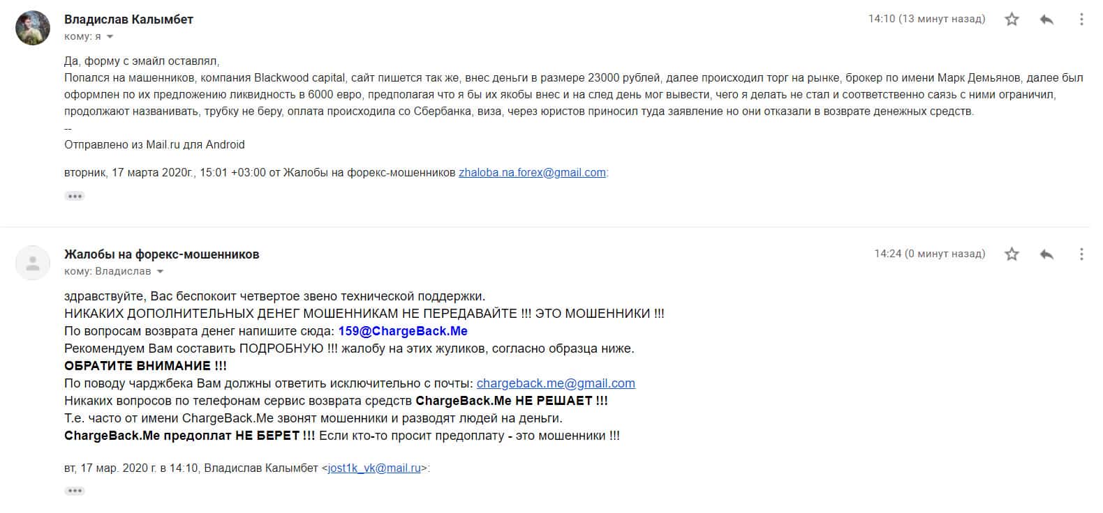 Жалоба на аферистов Blackwood Capital - клиента кинули более чем на 20 000 рублей
