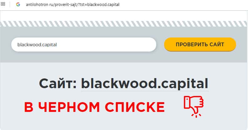 Сайт лохотрона Блэквуд Капитал находится в черном списке
