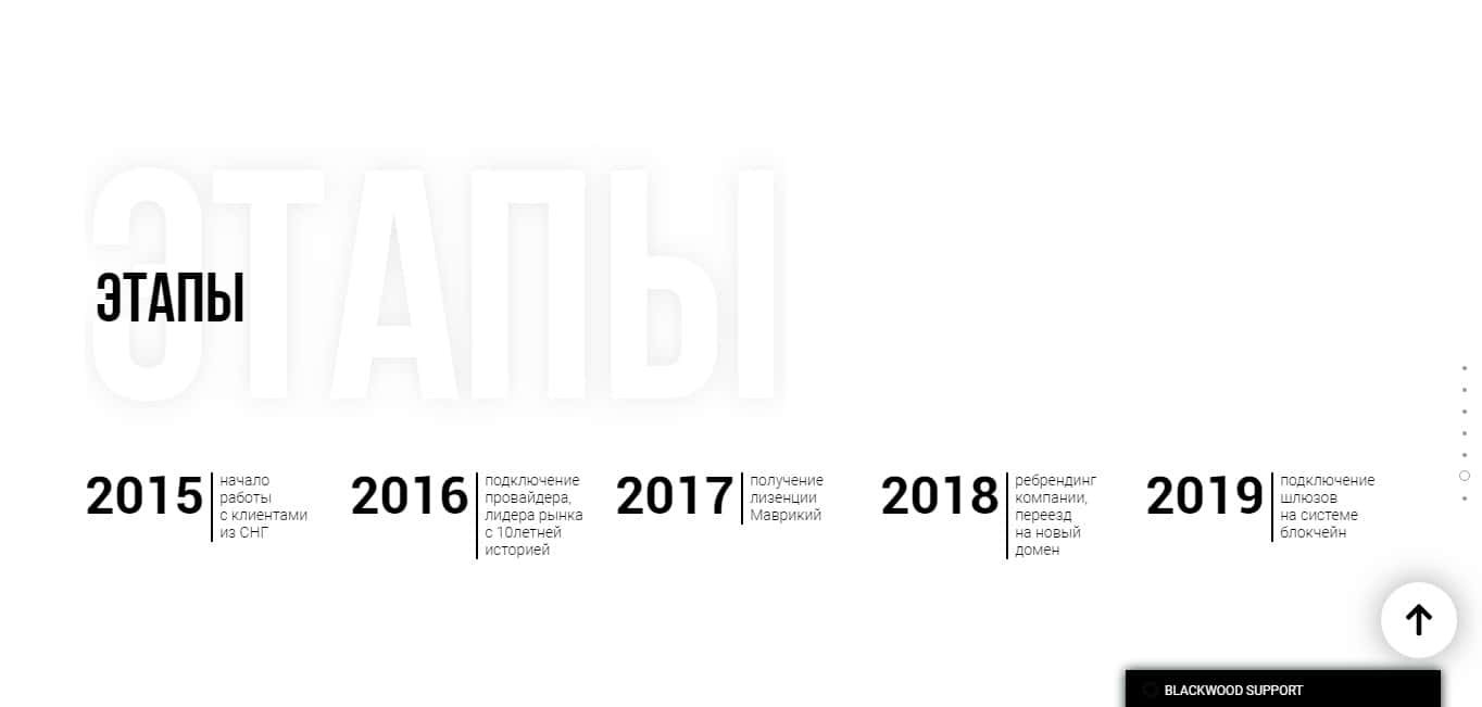 Сайт конторы Блэквуд Капитал сделан в неудобном стиле, так как чтобы прокрутить страницу нужно постараться. Такие сайты делали еще в начале 2000-ых, поэтому сразу можно сказать, что кухня не раскошеливалась над созданием ресурса, а просто слизали шаблон и заправили его контентом.