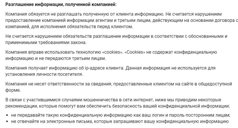 В политике конфиденциальности, которое предоставляет своим клиентам лохотрон Blackwood Capital, мы нашли также много изъянов, особенно это касается разглашения информации о клиентах. Там сказано, что жулье имеет право разглашать информацию как агентам, так и третьим лицам.