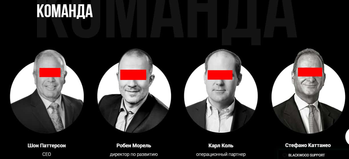 С руководством брокерской конторы Blackwood Capital на первый взгляд все прозрачно и понятно, но все же интересует такой вопрос, касательно того, что все они иностранцы, а сайт исключительно на русском языке. Сразу вспоминаются множество контор, которые используют просто левые данные и фотографии якобы руководства. И все же перечислим их имена: