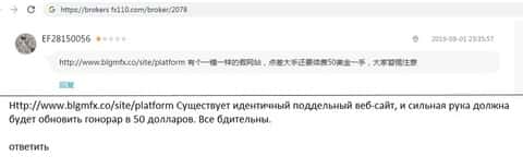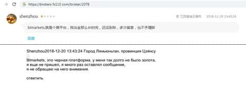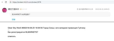 Контора BLGM продолжает дурить и обворовывать китайских пользователей. Отзыв очередной жертвы лохотрона находится на портале brokers fx110 com. Здесь же можно найти адрес китайского веб-сайта мошенников - замануху для доверчивых юзеров, добровольно пополняющих кошельки аферистов.