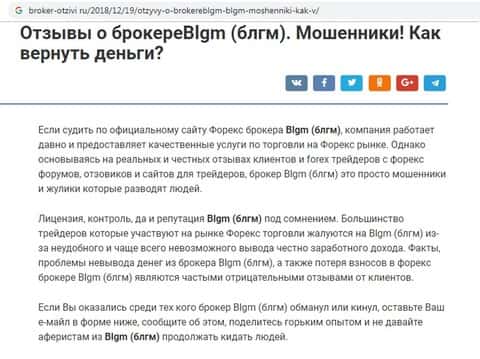 Если лохотронщики из BLGM и Вас тоже ограбили, то обязательно расскажите об этом случае нам. Сообщите свой адрес электронной почты в форме связи чуть ниже, и тогда с Вами выйдут на контакт.