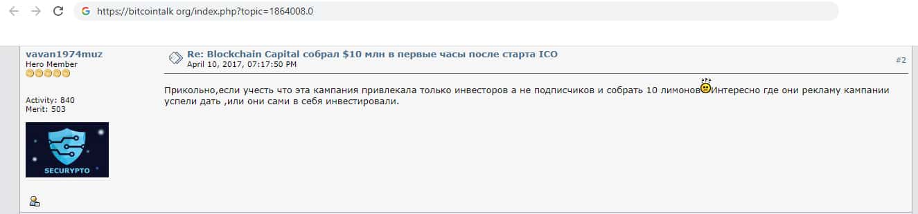 - Ответ пользователя на заказной комментарий компании разводил BlockchainCapital Pro