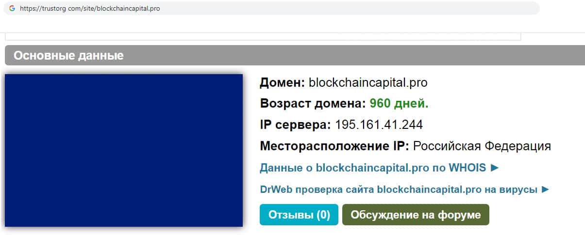 - Информация о возрасте компании финансовых жуликов Блокчэйн Капитал