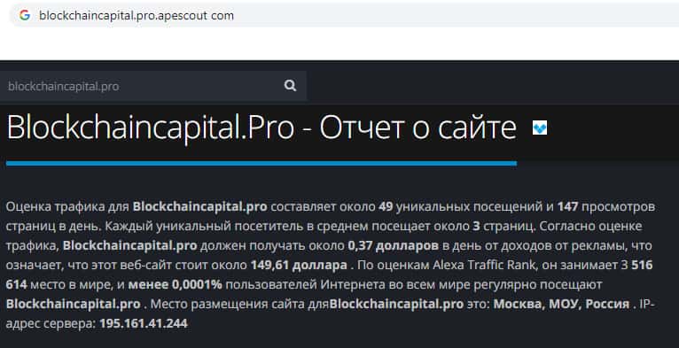 blockchaincapital.pro.apescout com - сайт с информацией о стоимости сайта кидал BlockchainCapital Pro