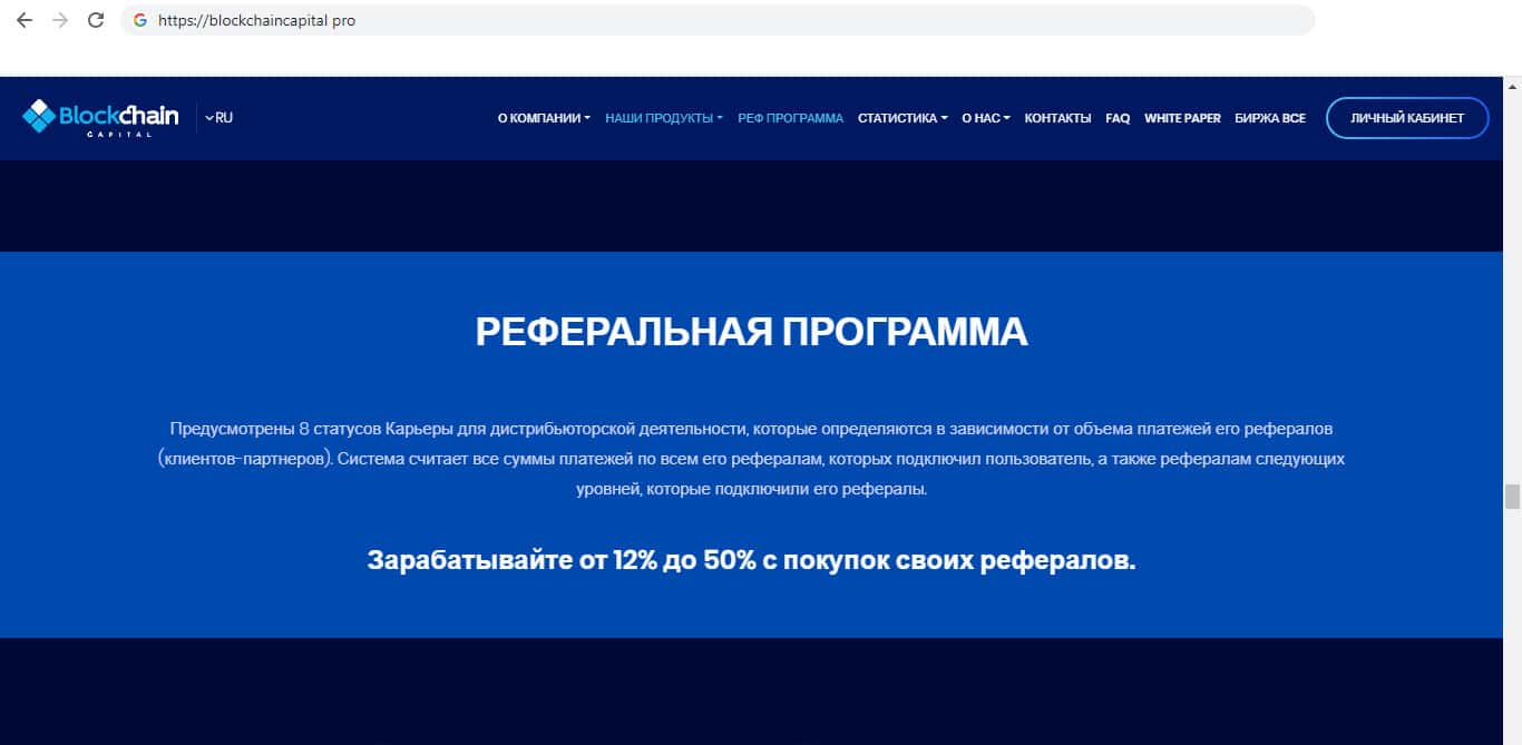 - Реферальная программа лохотрона Блокчэйн Капитал