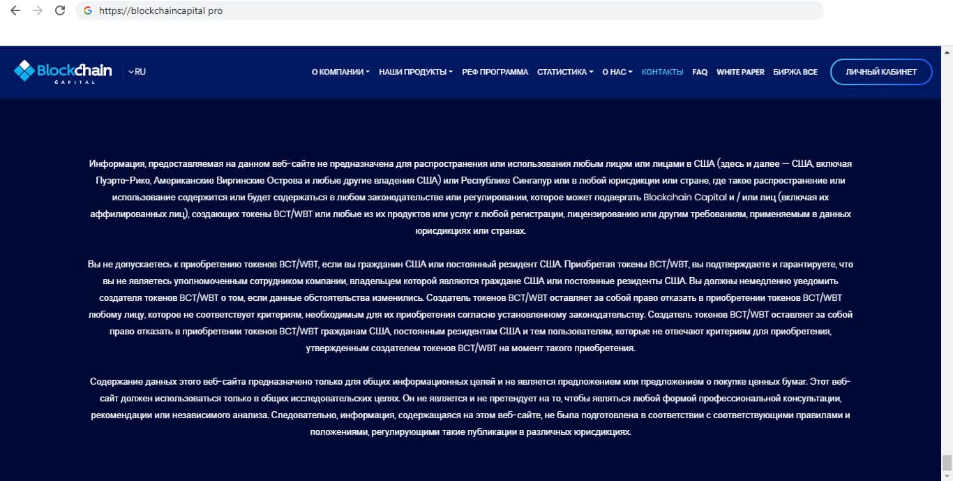Обзор главного интернет ресурса кидал BlockchainCapital Pro