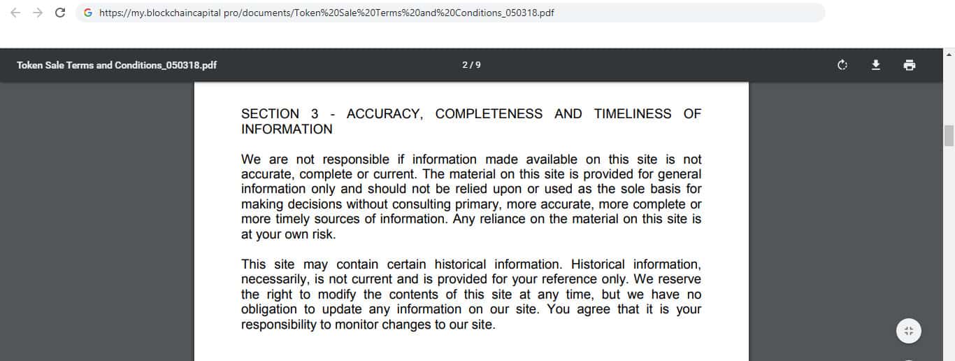 Мы предоставляем перевод данного пункта на русский язык, так как компания BlockchainCapital Pro предоставила документацию только в англоязычном формате.