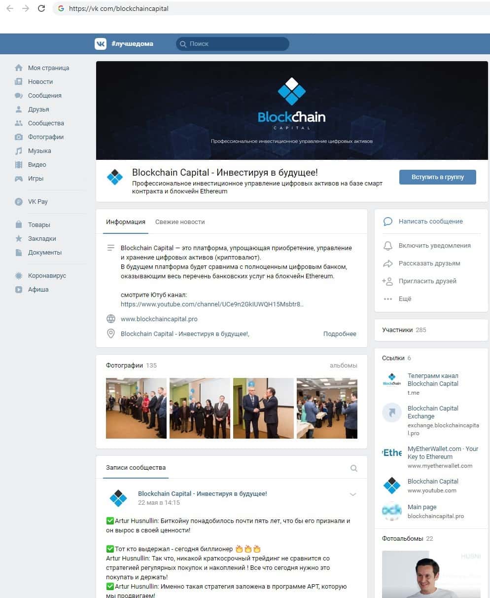 - Сотрудничество компании кидал BlockchainCapital Pro с социальными сетями