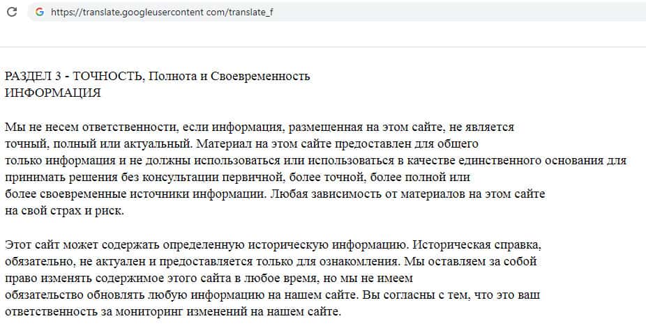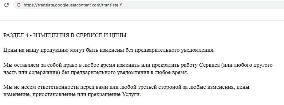Мы предоставляем перевод этого пункта условий использования сайта лохотронщиков BlockchainCapital Pro на Русский язык.