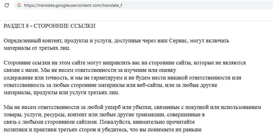 Мы предоставили перевод пункта о сторонних ссылках на сайте кидал Блокчэйн Капитал на русский язык.