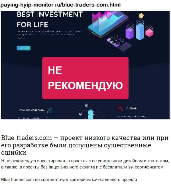 Еще один авторитетный ресурс говорит о том, что вкладывать в Блу Трейдерс нельзя