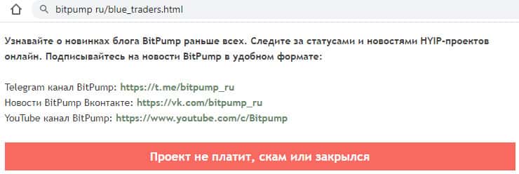 - Хайп Blue Traders - это проект, который уже по сути закрылся