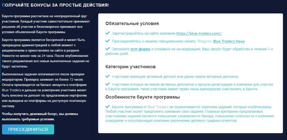 Программа "Баунти" от мошенников Блу Трейдерс