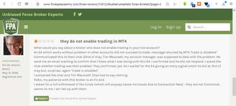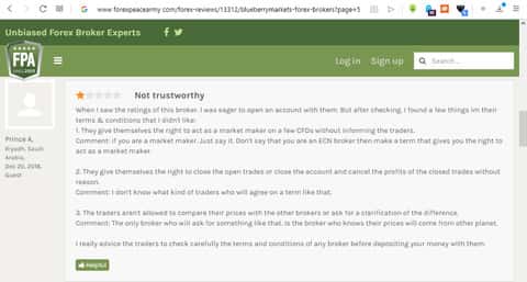 На сайте forexpeacearmy, посвященному форекс брокерам, их анализам и трейдингу на последних, присутствует отрицательный отзыв мошеннической конторы Blueberry Markets, который был явно проплачен. Там говорится о полной опасности и безнадежности работы с данным брокером, о "многофункциональном" сервисе, который не был протестирован ни одним специалистом.