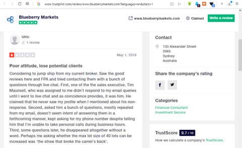 В глобальной сети интернет, по адресу forexbrokerslab com, находится подробная критика работы сайта Blueberry Markets, администрация сайта сильно потрудилась и спарсила всю информацию с конторы мошенников. Сервис уличают в том, что он активно занимается скамингом, обворовывая несчастных клиентов, которые доверились этим жуликам, кричащих о доверии.