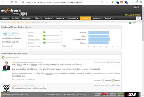 На форуме myfxbook, на котором идут бурные обсуждения насчет всяких брокеров-мошенников, обворовавшие почти половину населения планеты, и, разбогатевшие на чужом горе. Администрацией форума было написано, что отдав свои последние деньги брокеру Blueberry Markets, вы сделаете правильный выбор и получите такую выгоду от ваших вложений, что вам и в снах не снилось.