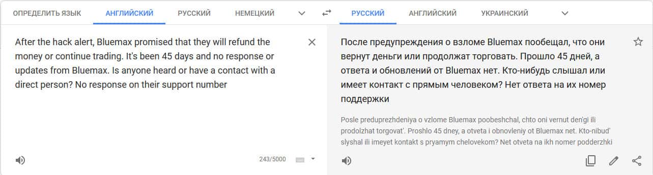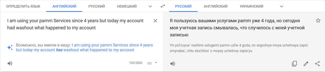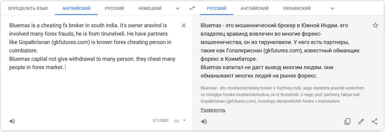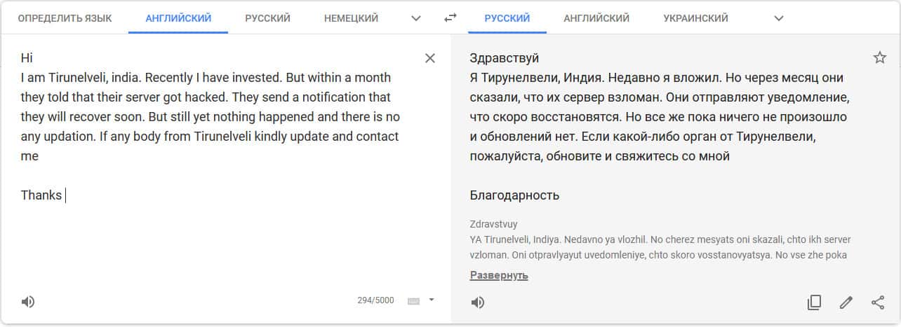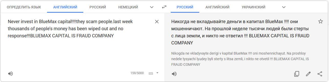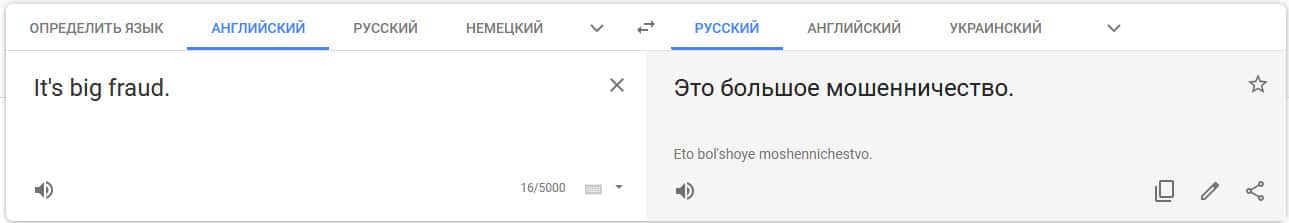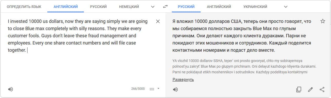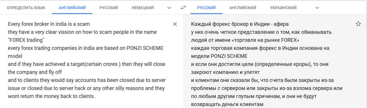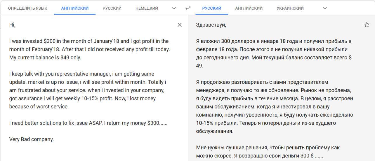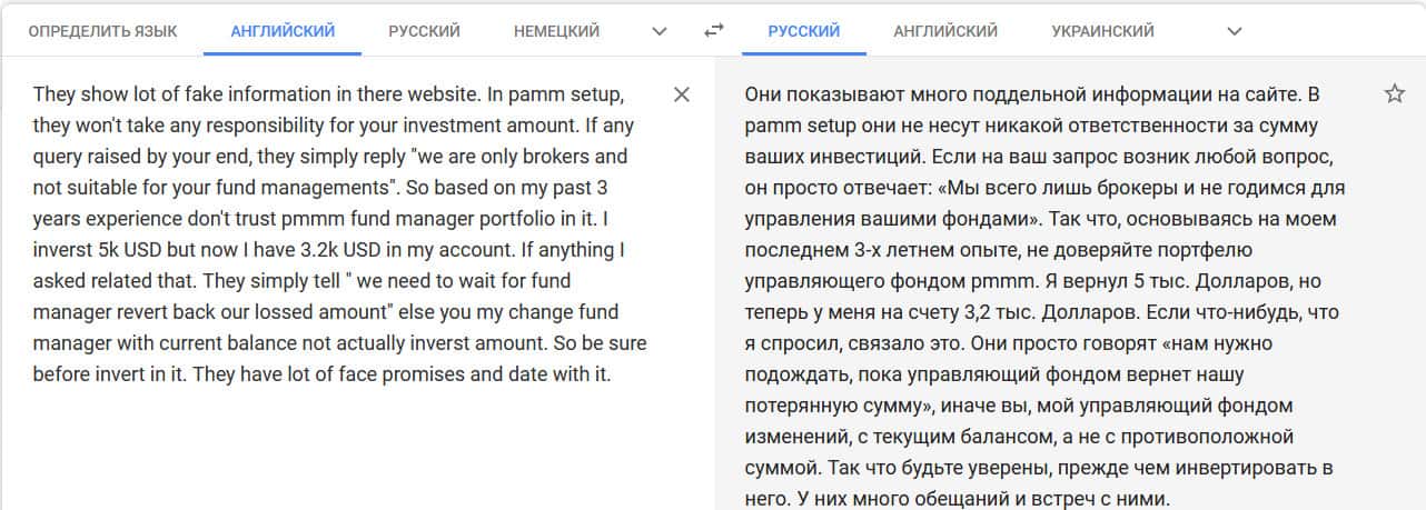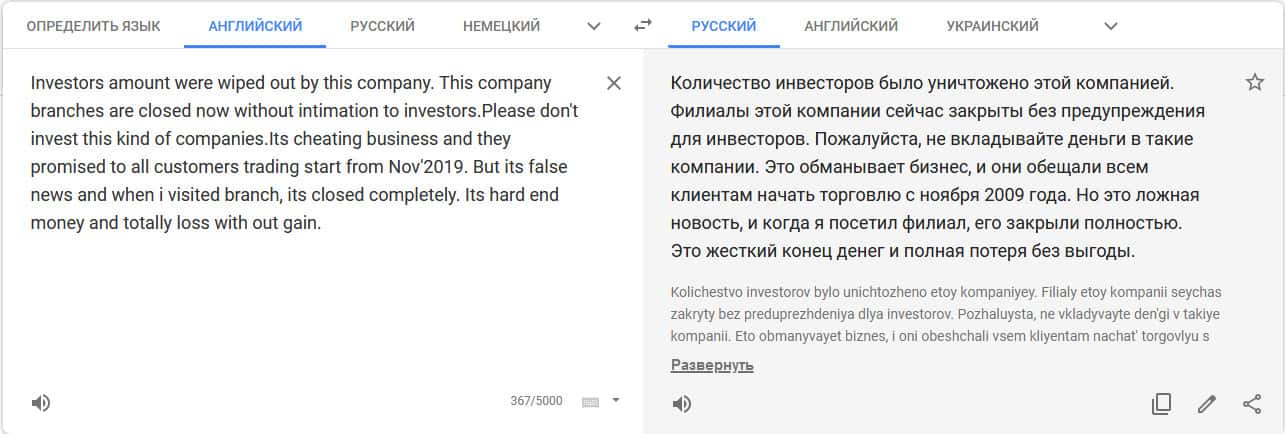 Перевод отзыва о мошенниках на translate.google com/?hl=ru