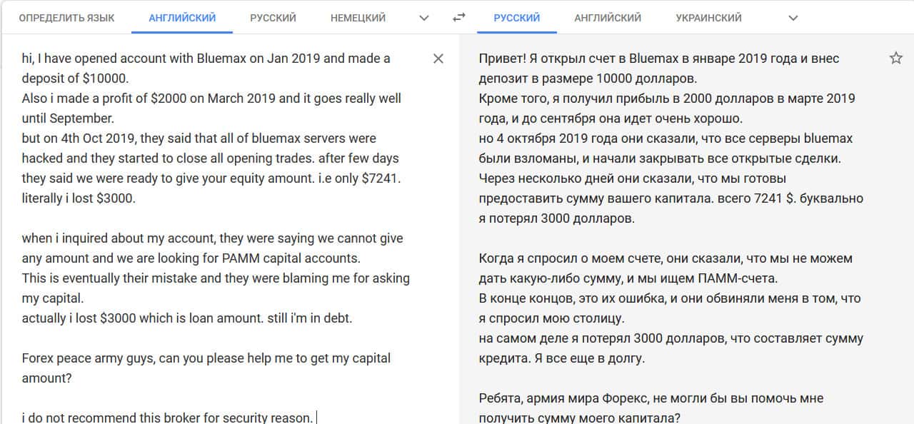 - После 4 лет предоставления услуг BlueMax Capital просто заблокировали клиенту его аккаунт