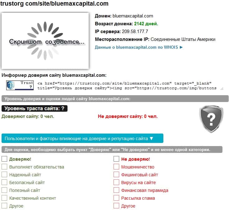 - Что можно скзаать о сайте мошеннического проекта BlueMax Capital?