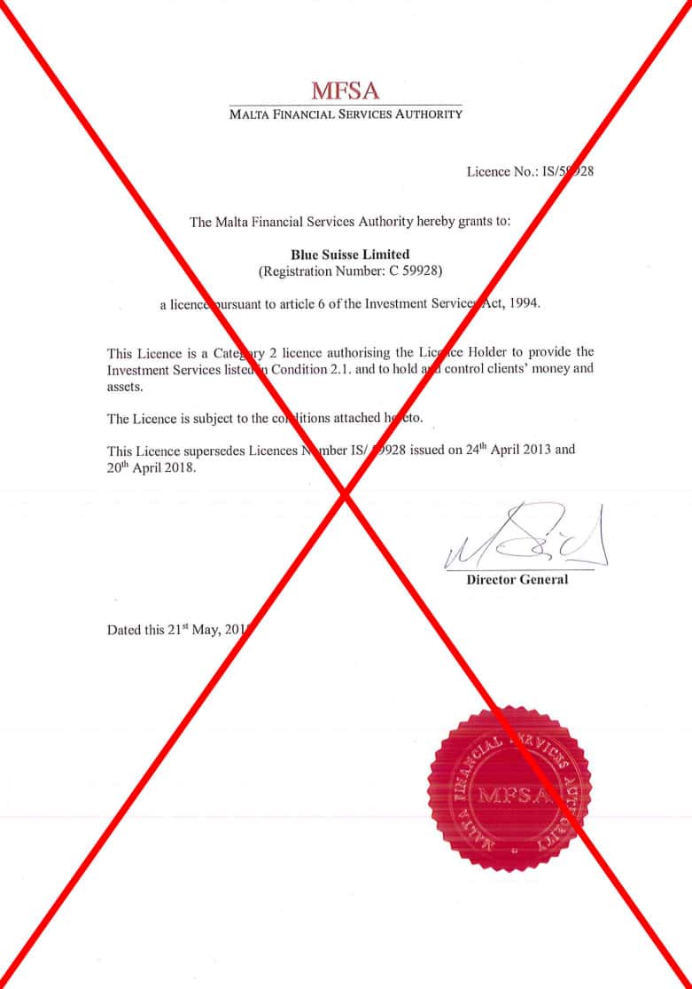 Контора Blue Suisse регулируется Malta Financial Services Authority, который расположен на Мальте, а вот проводит деятельность она свою в основном на территории стран СНГ. Власти государства вам точно не помогут, а придется летать с одного уголка земли в другой, дабы добиться правды и забрать свои тысячи долларов.