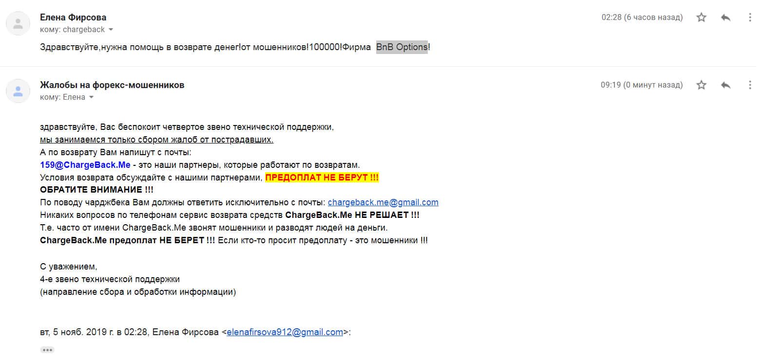 Жалоба на контору BnBOptions от клиента, утратившего 100 000