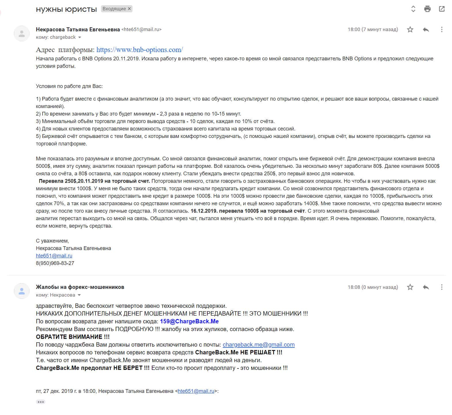 - Жалоба на лохотронщиков БНБ Опционс, которые кинули клиента на деньги