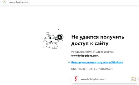 Интернет-ресурс БНБ Опционс слетел как и сама контора