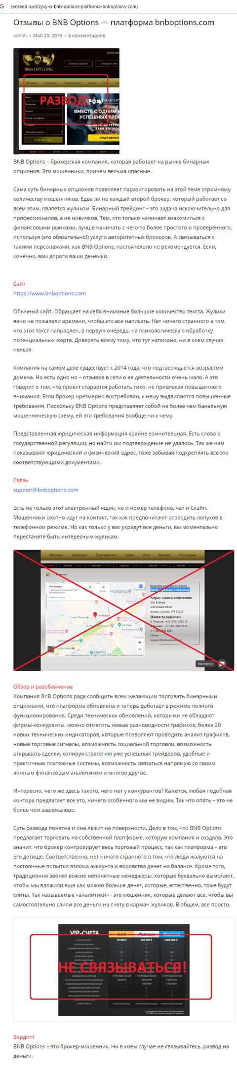 Чтобы как можно больше понять что это была за контора BNB Options и чем она жила, мы решили предоставить статью с одного авторитетного интернет-ресурса, где описывается суть аферы, методы развода клиентов, а также о сотрудниках, которые представляются аналитиками, а на самом деле обычные мошенники.