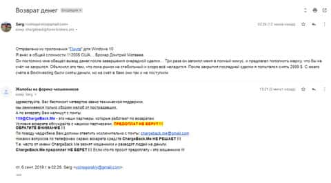 В данном письме человек жалуется на брокерскую контору Бох Инвестинг. Парень увидел этот сайт у себя на почте как спам, прочитавши это, он заинтерисовался, после чего зарегистрировался. Мошенники начали разводить мужчину на ввод денег под предлогом, что они приумножатся. В итоге у пострадавшего украли приблизительно 38000 долларов.