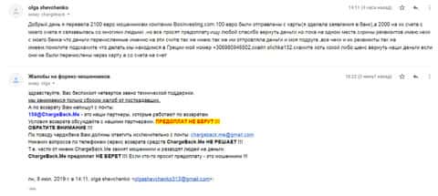 Пострадавшая сторона рассказала как аферисты дилинговой кухни Бох Инвестинг выманили у него 11 200 долларов США под предлогом прекрасных обещаний о безбедном будущем. После перевода средств, никто на связь больше не выходил. А вывод так и не поступил на его банковский счет.