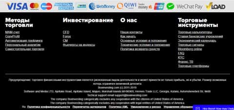 Завершается сайт мошенников Бох Инвестинг типичным перечнем ссылок, ведущих на различные разделы сайта аферистов BoxInvesting, а так же предупреждением о рисках торговли. Окончание сайта жуликов Бох Инвестинг вы можете увидеть на изображении, расположенном ниже.