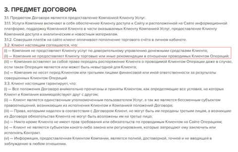 Помните второй раздел главной страницы сайта аферистов BoxInvesting, в котором аферисты распинались о нереальной прибыли у них, а так же доверительном управлении. Так вот, уже в третьем разделе условий сотрудничества жулики Бох Инвестинг отказываются от их предоставления.
