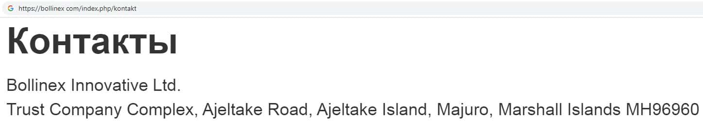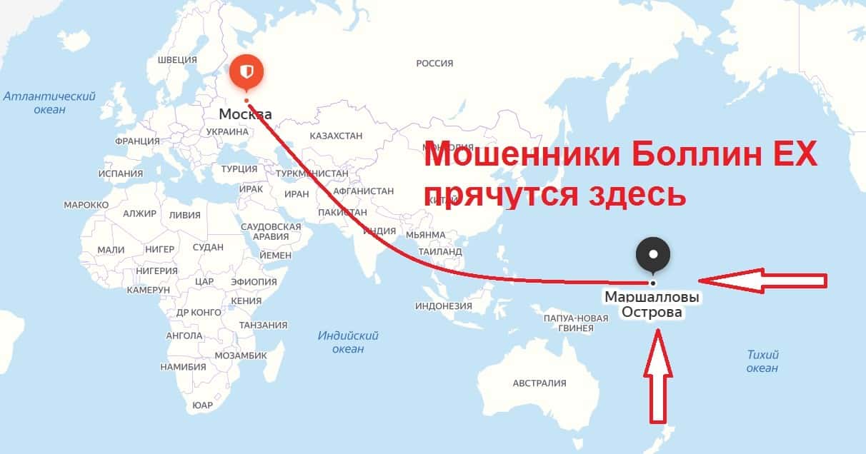 Местом регистрации данного интернет-лохотрона под названием Боллин ЕХ является один из оффшоров, а именно Маршалловы острова.
