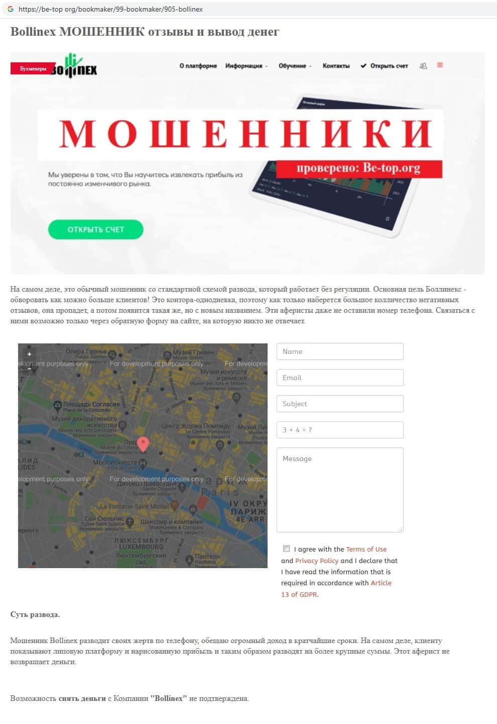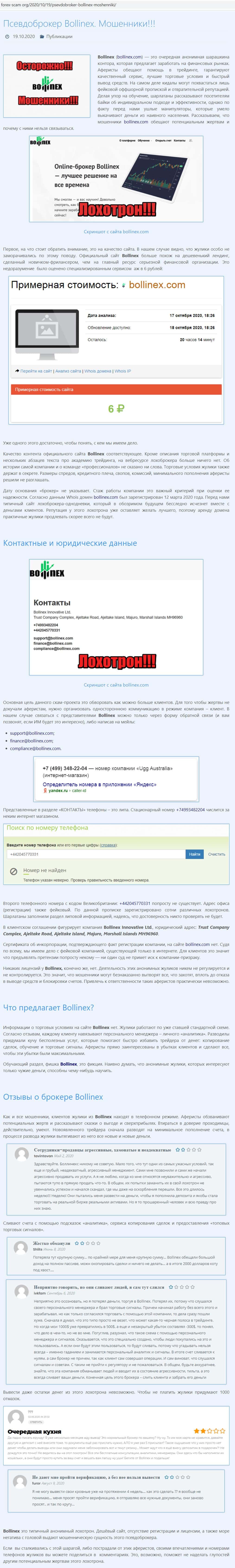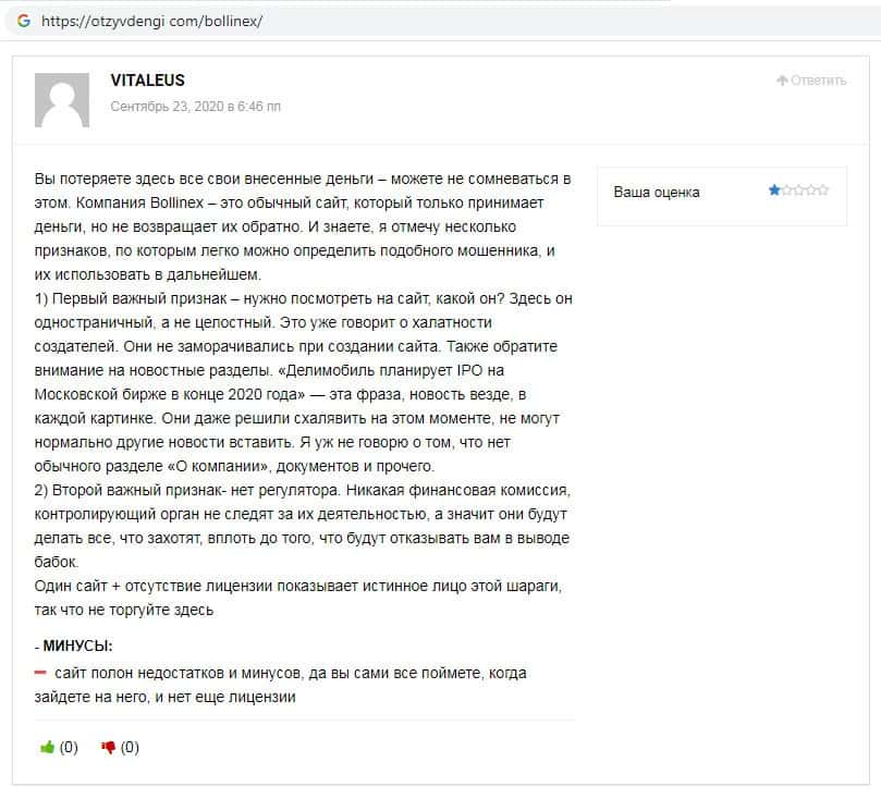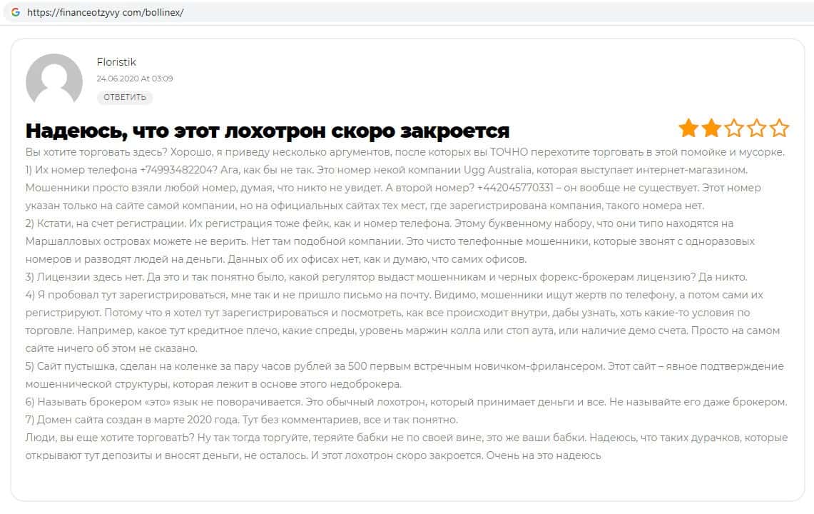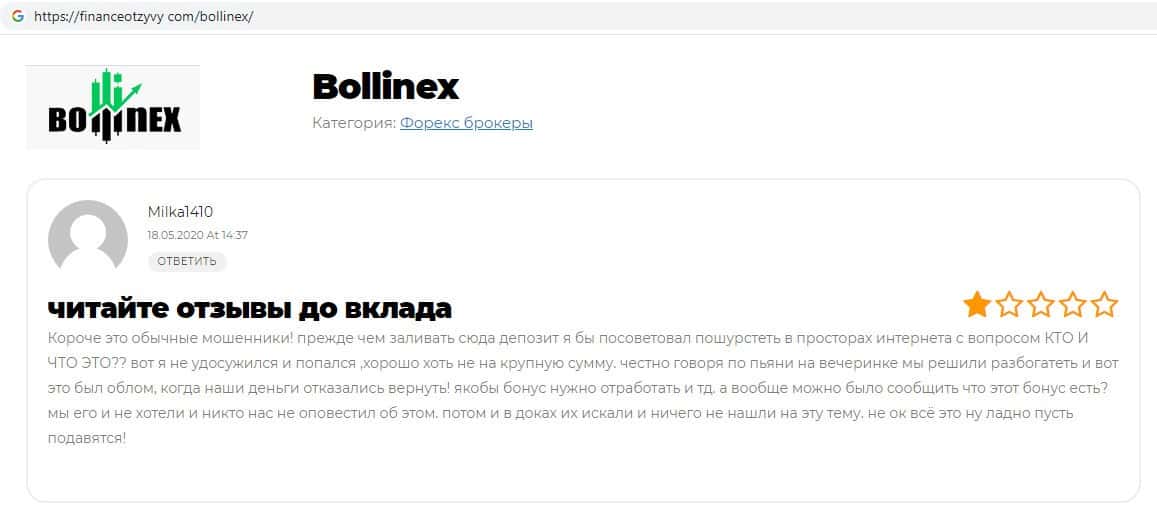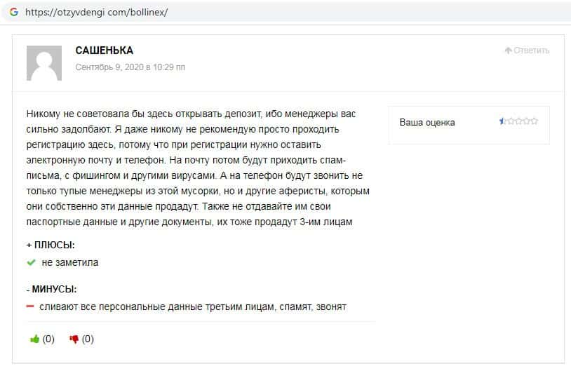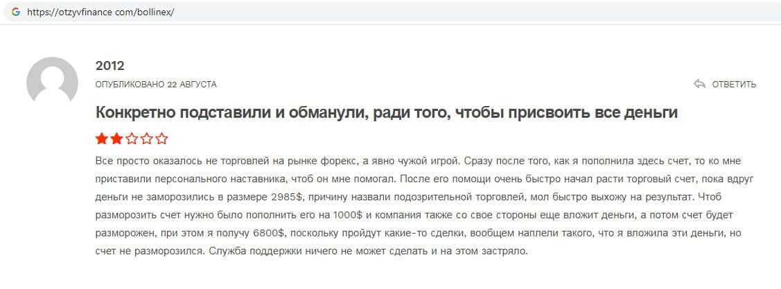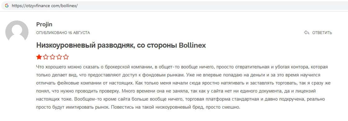 - Отзывы о скам-брокере Боллин ЕХ, ныне присутствующие в интернет-сети