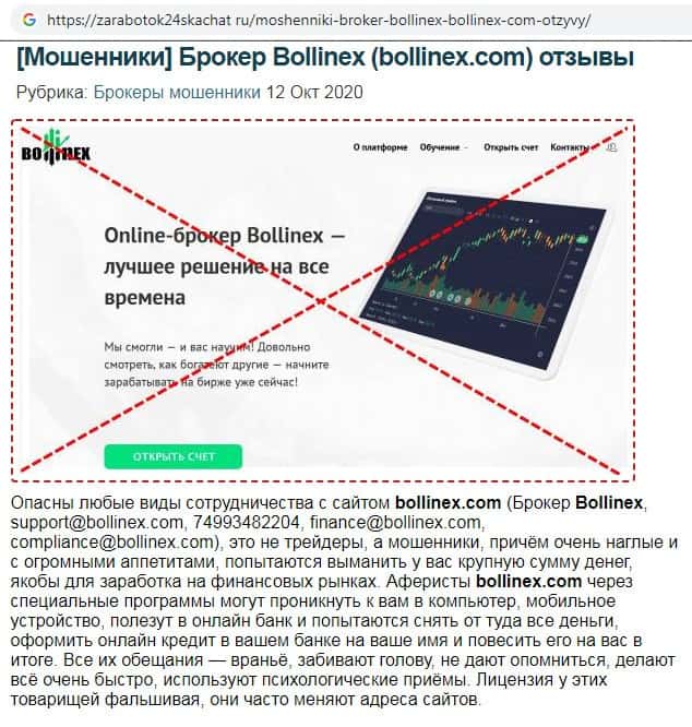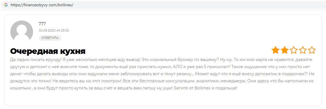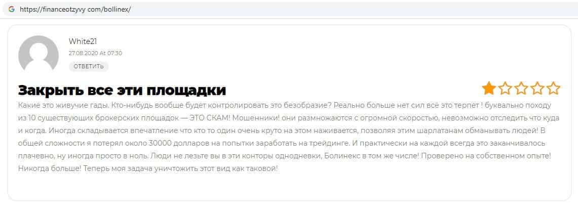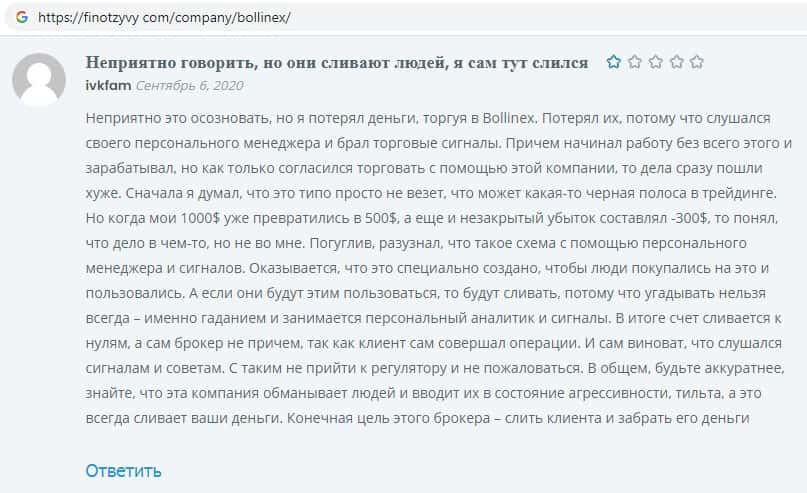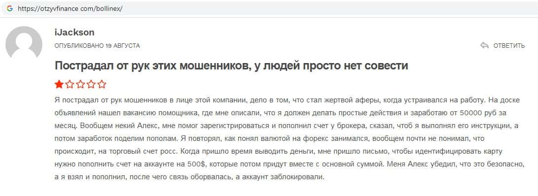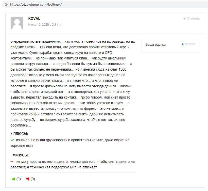 Отзывы о скам-брокере Боллин ЕХ, ныне присутствующие в интернет-сети